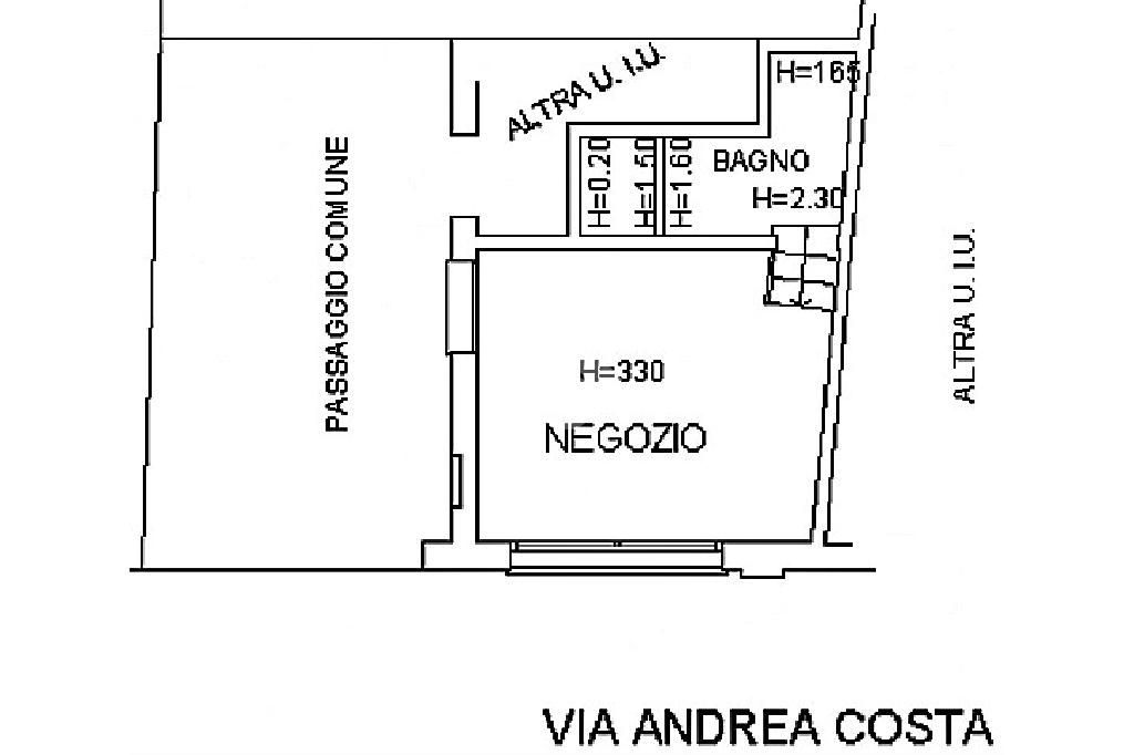 via Andrea Costa- in posizione di forte passaggio, di fronte alla fermata del'autobus, proponiamo in vendita negozio ristrutturato composto da unico ambiente con doppio accesso (porta blindata da cortile condominiale e porta scorrevole su strada) e bagno. Serranda elettrica e riscaldamento/raffreddamento autonomo con pompa di calore.